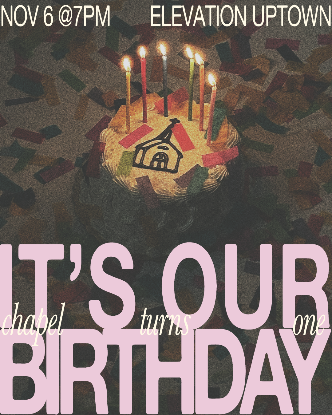 During my internship at Elevation Church, I had the privilege of designing for Elevation Young Adults. One of my favorite projects was developing the full visual identity for Chapel’s birthday celebration, which featured special guest Lizzie Morgan from Red Worship. The creative direction was simply “cool girl birthday,” along with a few reference images of the Chapel Cake that immediately set the tone for the project. I built the concept around vintage photography, a nostalgic color palette, and playful typography. I was also onsite the day of the event, providing graphic support and making last-minute updates to ensure every element was perfect. This remains one of my most meaningful projects—not only because of the aesthetic, but because I designed every asset displayed that night.